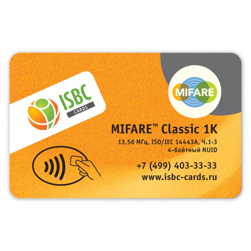 Общий объем памяти карты, произведенной ISBC на базе чипа семейства MIFARE® Classic составляет 1024 байт. Смарт-карты MIFARE® Classic 1К производятся в полном соответствии с международными стандартами ISO 14443, ISO 7810, ISO 7816 в России. Мы можем изготовить как белые карты MIFARE® Classic 1K под прямую печать, так и карты с печатью.