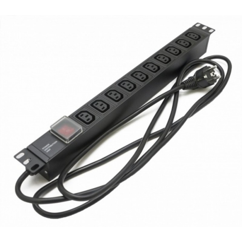 Блок розеток 19", с выкл. с подсветкой, 10хIEC320 C13, 10A, каб. пит. 3х1.5, дл. 2.5м, с вил. Sch.